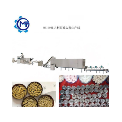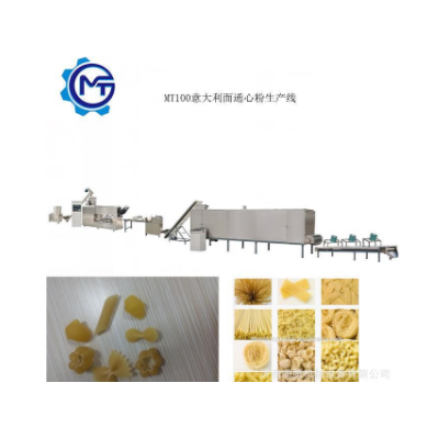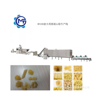 美騰通心面意大利直面生產線的加工工藝是單螺桿擠壓成型的,其最大優點是可以更換各種模具及配套設備,擠壓出空心狀、實心細面條、螺旋狀、貝殼狀、彎管等多種花色品種。經過近幾年的設備改良,干燥溫度的提高,整條生產線具有自動化程度高、操作簡單、工藝時間短等特點,可根據客戶要求變換設備配置加工模具。