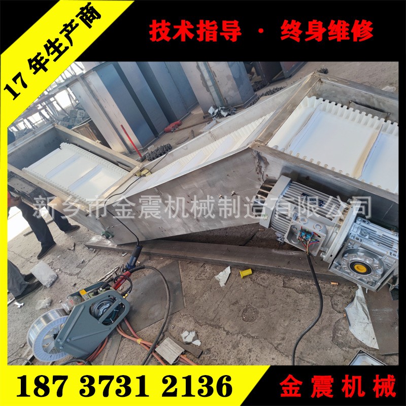 大傾角皮帶輸送機(jī)又叫大傾角擋邊輸送機(jī)或大傾角擋邊帶式輸送機(jī),是一般用途的散狀物料連續(xù)輸送設(shè)備,它采用具有波狀擋邊和橫隔板的輸送膠帶,特別適用于大角度輸送物料。大傾角帶式輸送機(jī)不僅具有通用帶式輸送機(jī)結(jié)構(gòu)簡單、運(yùn)行可靠,維修方便等優(yōu)點(diǎn),還具有輸送傾角大、結(jié)構(gòu)緊湊、占地少等特點(diǎn),是大傾角輸送的理想設(shè)備。