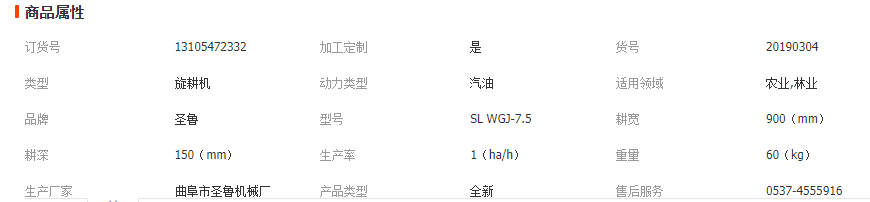各種規(guī)格旋耕機參數(shù)