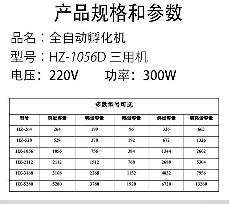 產(chǎn)品規(guī)格264孵化機(jī),528孵化機(jī),1056孵化機(jī),2112孵化