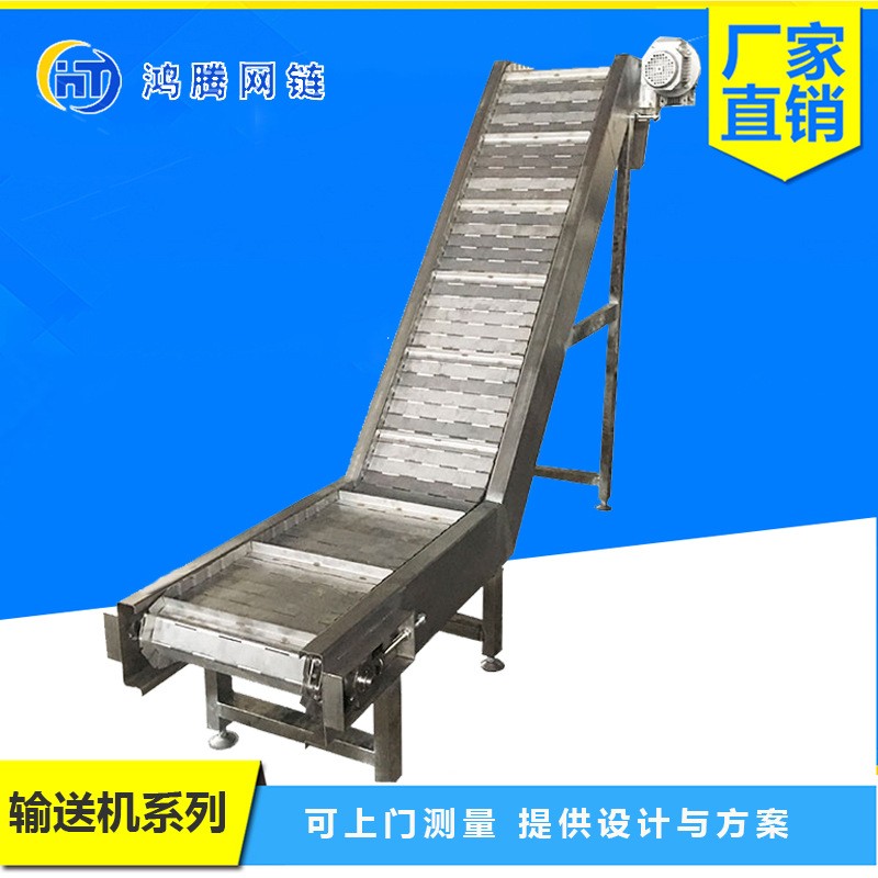 304不銹鋼鏈板提升機爬坡上料提升機食品清洗用板鏈傳送帶輸送機