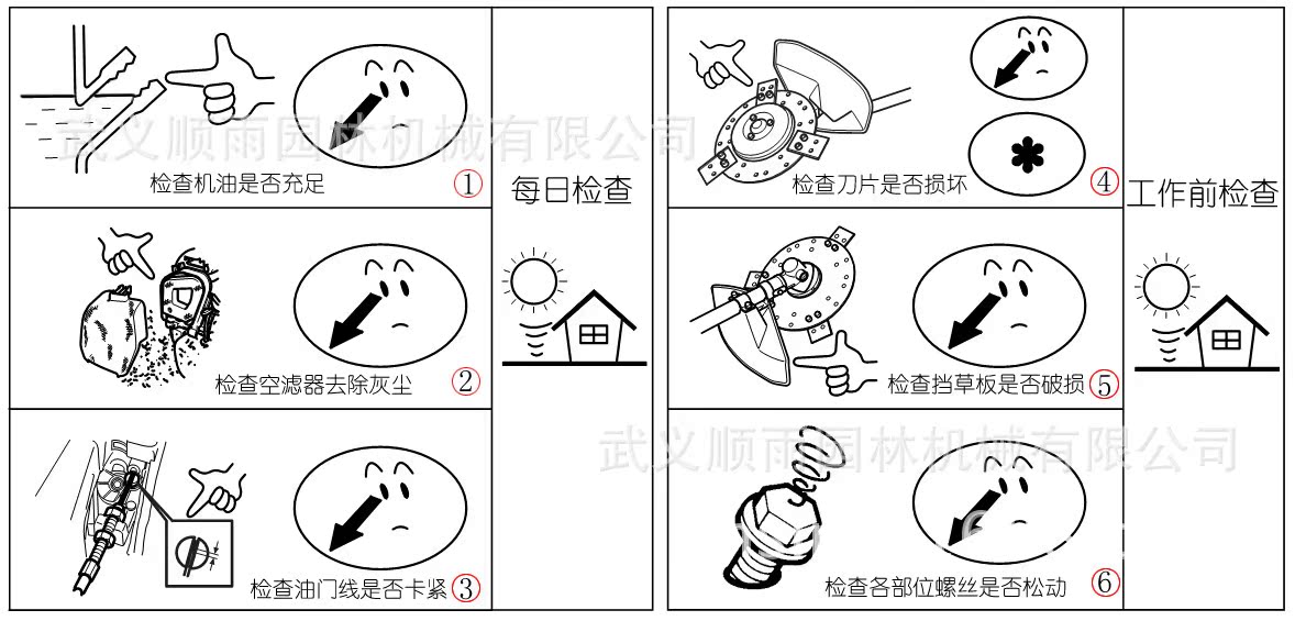 5.工作前檢查擋草板是否完好,更換開裂損壞的擋草板。