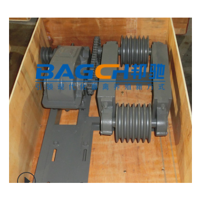 牽引式清糞機主要由主機座、轉角輪、牽引繩、刮糞板等組成,電機運轉帶動減速機工作,通過鏈輪轉動牽引刮糞板單向運行完成清糞工作。