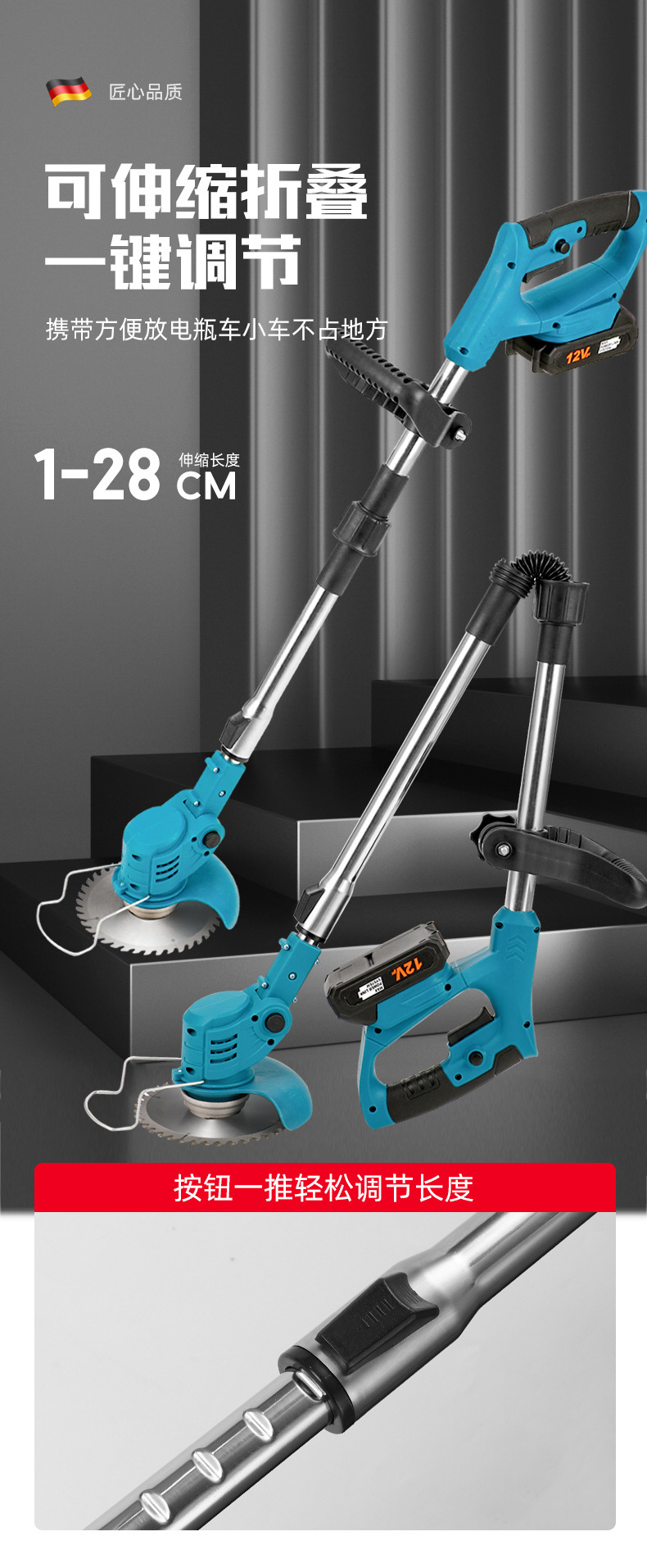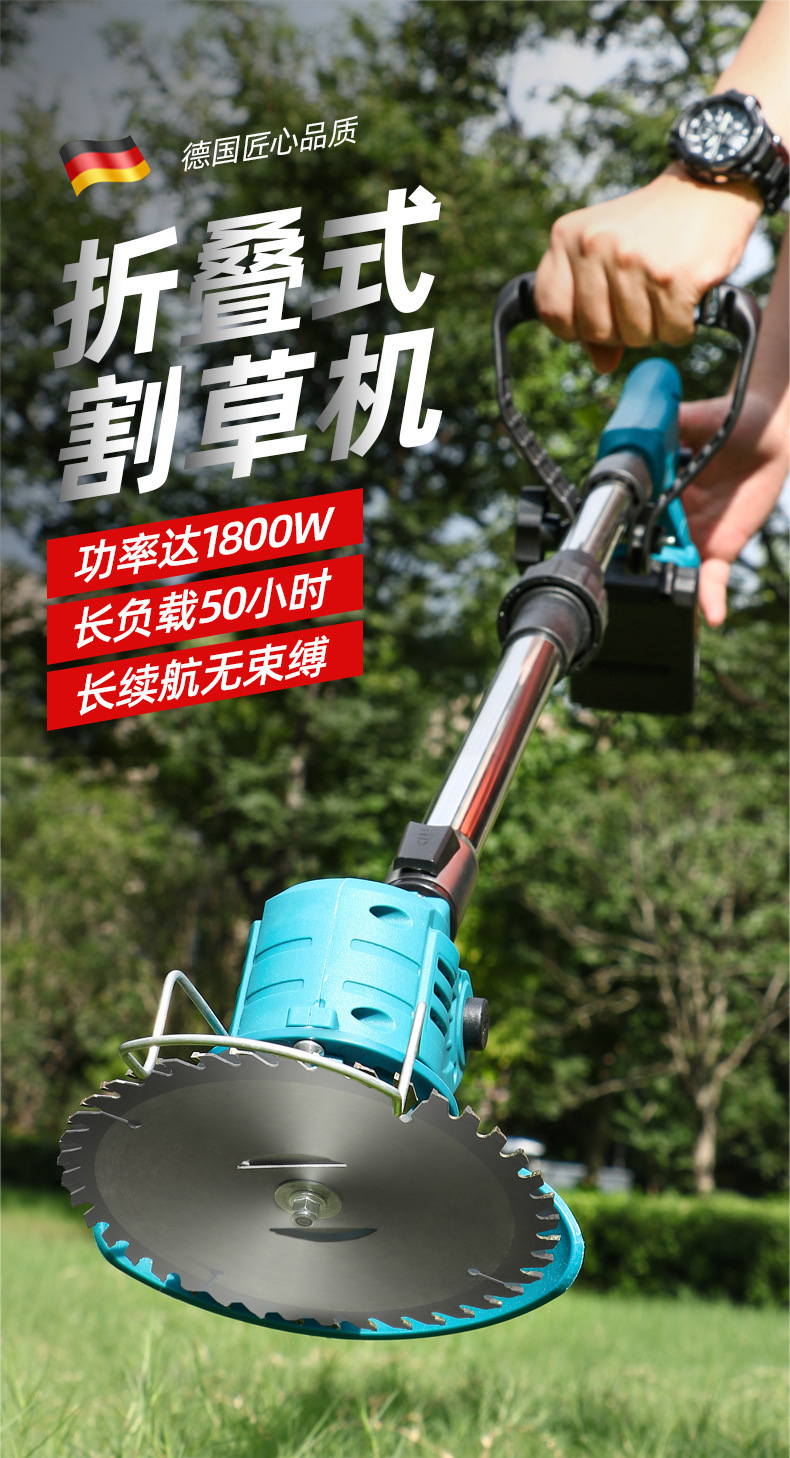 跨境折疊式鋰電池割草機家用充電式園林修剪草坪機手持除草機批發