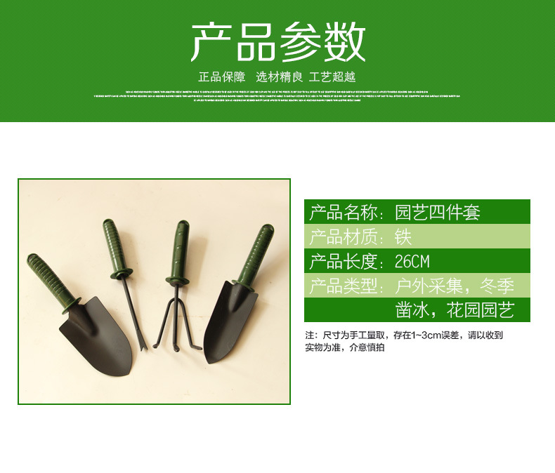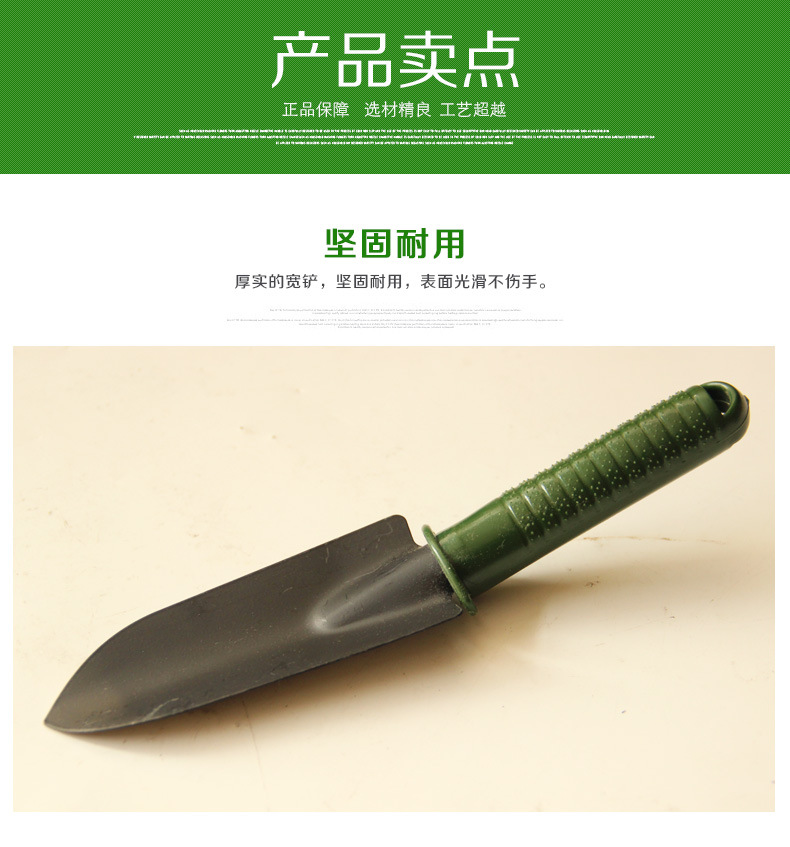 詳細(xì)信息 材質(zhì)塑料把柄,鐵頭 貨號0002 是否進(jìn)口否 類型鏟子 品牌春暉園林 適用場景園林園藝種植 規(guī)格綠柄四件套,綠柄三件套,軍綠大三件套 是否跨境出口專供貨源否 作用挖掘 主體材質(zhì)鐵 是否可折疊否