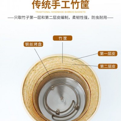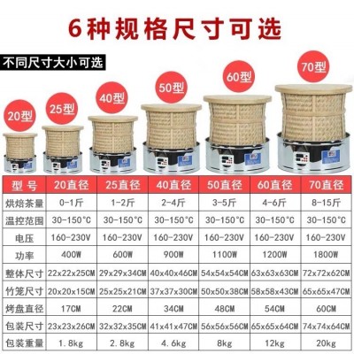 系統默認款式二篩子(鐵絲網篩)需要其他款式篩子,請聯系客服。13599233116 【多功能家用商用提香機】 茶店,茶樓,居家,酒樓好幫手--傳統無碳茶葉電焙籠,可烤綠茶,花茶,鐵觀音,紅茶,大紅袍等各種茶葉 【特點】 1.可降低茶葉含水量,但茶葉仍保侍清香口味,而不含烤火味. 2.烘過的茶葉不會變色. 3.提升茶葉香氣,色澤,口感. 4.延長茶葉保質時間. 5.機身體積小巧,不占空間,重量輕,移動方便,適合各種不同場所. 放在家中,酒店,茶樓,公司,店里等場所烘焙茶葉中,茶香四溢,能吸引顧客聞香上門;現焙現賣,延長茶葉保鮮時間,體現質量對顧客負責。多功能無炭茶葉電烘焙提香機竹編機體回歸傳統碳焙工藝。