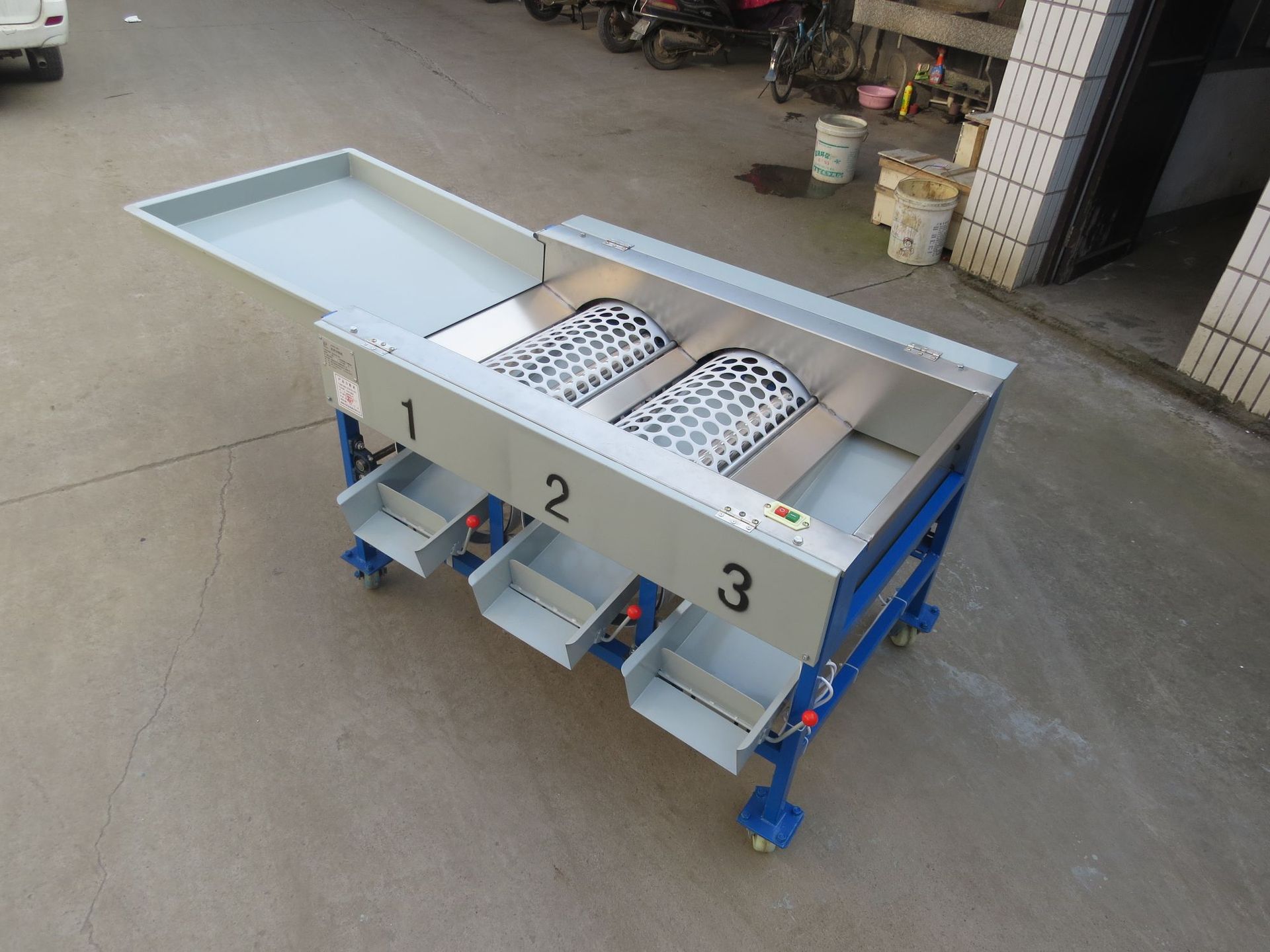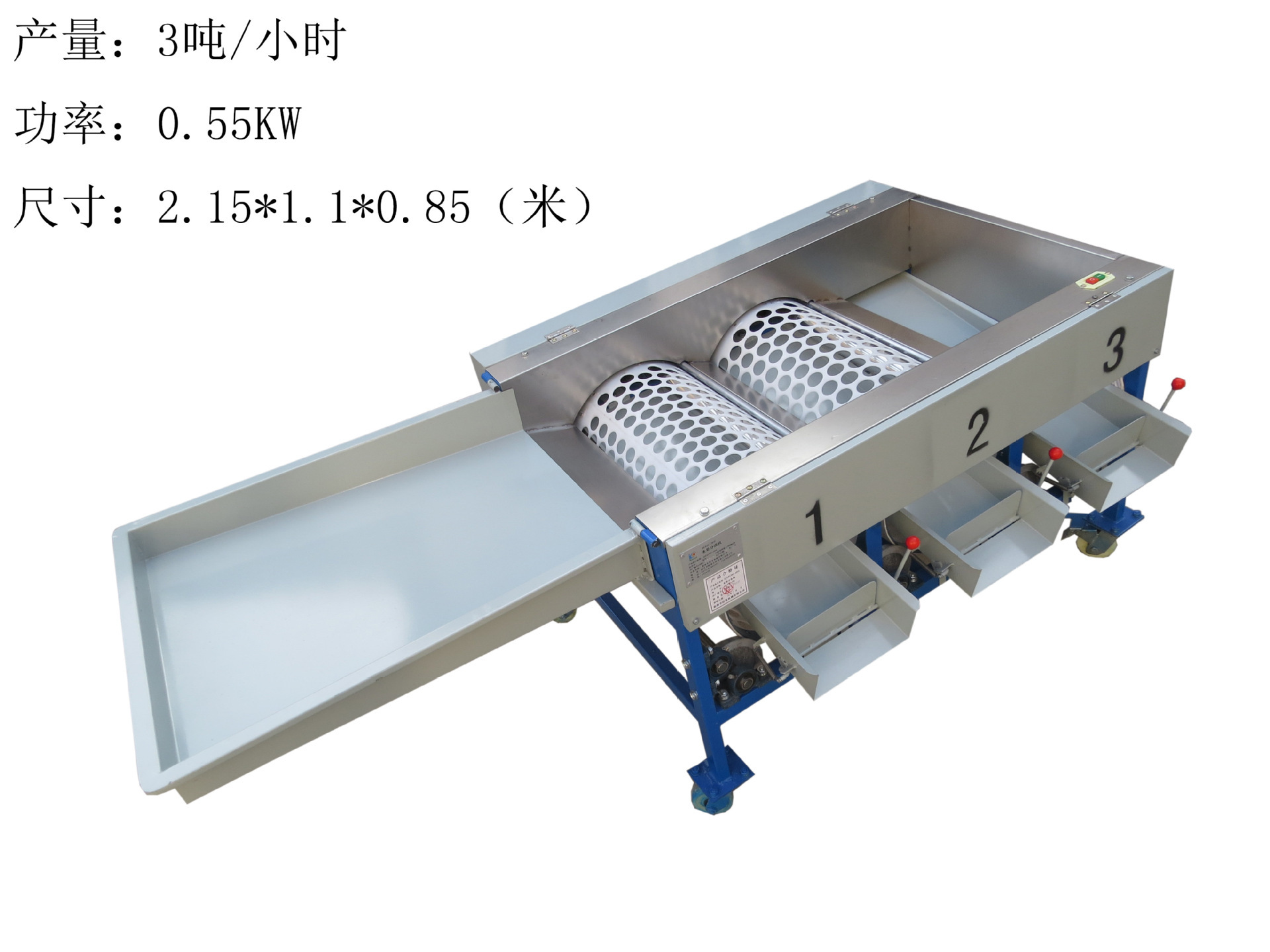 本機器由鐵板斗和2筒3級分級機組成