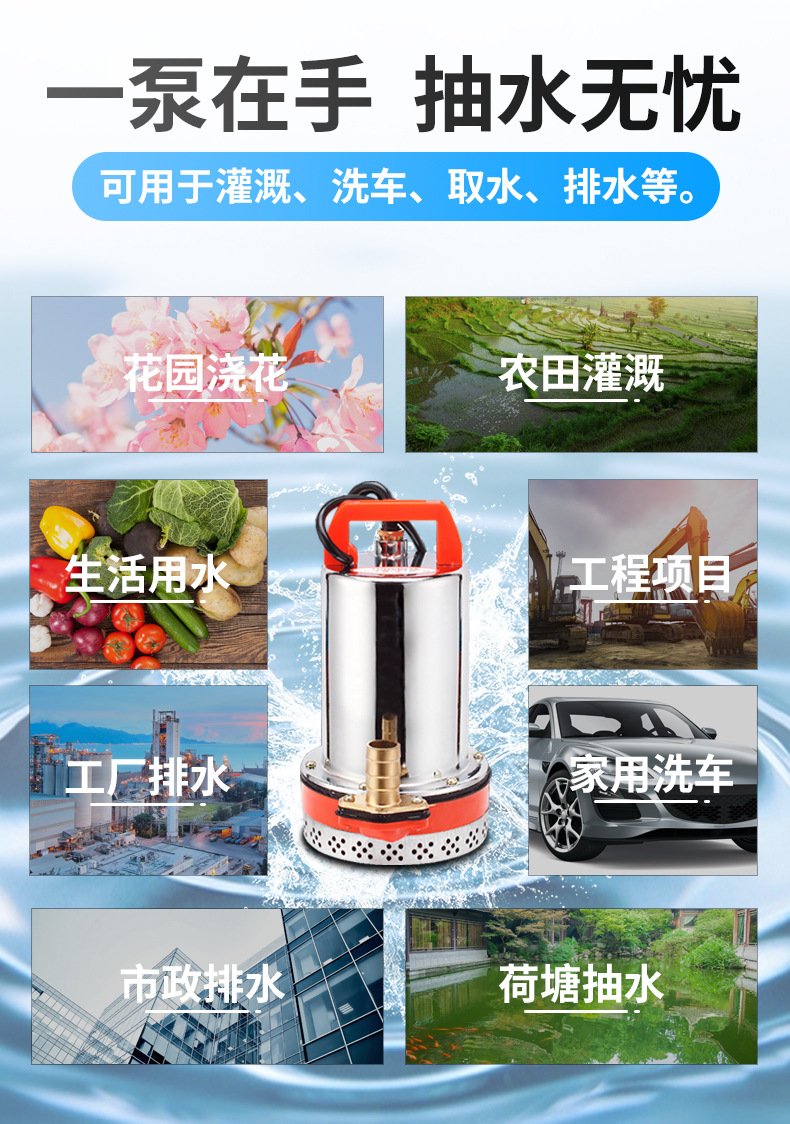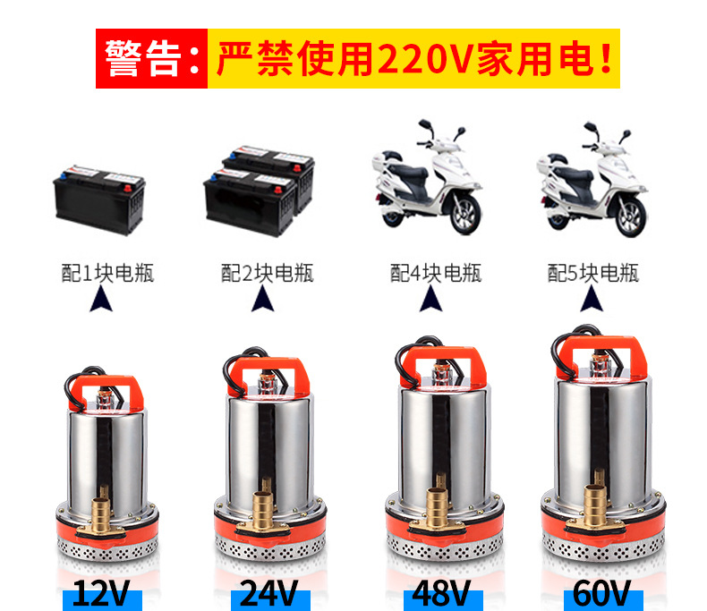 超韓ZQB不銹鋼直流潛水泵12v24v48v60v農(nóng)用灌溉抽水小型電瓶水泵