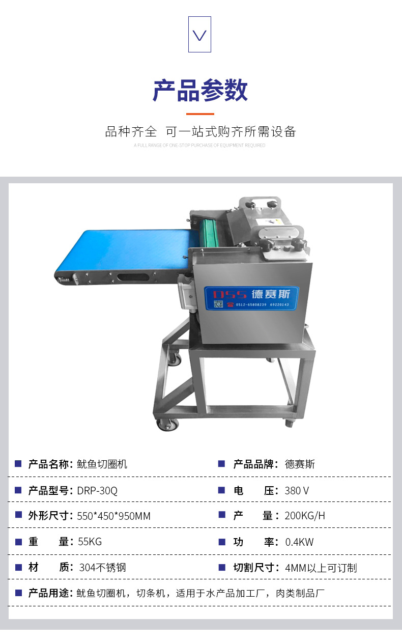 詳細信息 訂貨號DRP-30Q 加工定制否 貨號DRP-30Q 種類魷魚切圈機切條機 品牌德賽斯 型號DRP-30Q 電壓380(V) 功率0.4(kw) 凈重55(kg) 包裝木箱 外形尺寸550*450*950(mm) 產(chǎn)品用途魷魚切圈機,切條機,適用于水產(chǎn)品加工廠,肉類制品廠