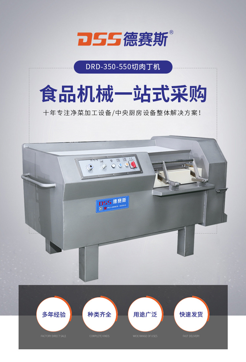 詳細信息 訂貨號DRD-350/350A 加工定制是 貨號DRD-350 550 種類凍肉片切丁機 品牌德賽斯 型號DRD-350/350A 電壓380(V) 功率3(kw) 凈重400(kg) 包裝木箱 外形尺寸1480*800*1000(mm) 產品用途能將鮮肉、凍肉、蔬菜等一次切成丁、絲、片。