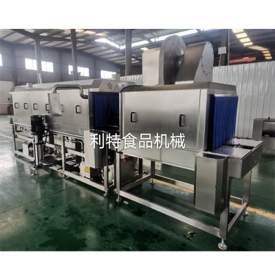 我們的洗筐機(jī)一般采用6米長制作,分為四段清洗,預(yù)洗、主洗、漂洗和沖洗,根據(jù)客戶的要求后面可加吹干機(jī),可進(jìn)行對筐子、托盤等的吹干