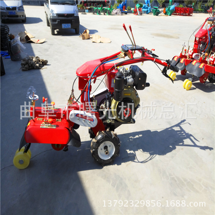 機器根據配置不同,又可以實現旋耕、起壟等功能,體積小、重量輕,適合多種地形環境作業,一機多用,是目前小型農機產品。 適用作物:大蔥、大姜、土豆、甘蔗、花卉、辣椒等作物的開溝、培土、起壟作業,以及大棚、山地、丘陵作業。 本機型有三大特點: 特點之一是經濟、高效、實用。 特點之二是體積小、重量輕、操作靈活、安全方便,特別適合在大棚、水田、果園、葡萄園、梯田、坡地以及小塊地中使用。 特點之三功能多,本機可在只更換作業刀具的情況下完成、扶壟、開溝、培土等多種農田作業,是農民朋友發家致富的得力助手。