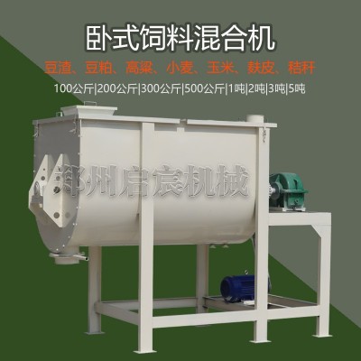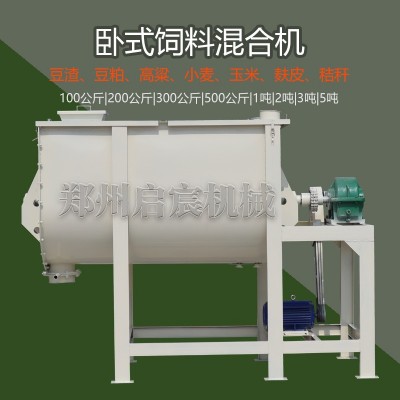 1噸臥式飼料混合機2噸發酵飼料攪拌機3噸粉劑顆粒麥麩拌料機