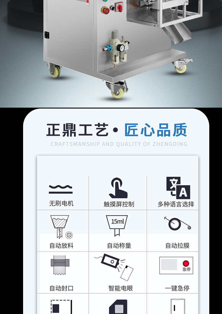 詳細信息 訂貨號ZD-220Y 加工定制是 貨號220Y 功能拆卸,打包,計量,封口,充填,包裝輔助,包裝容器成型,打碼、噴碼,條碼識別、打印 品牌正鼎 型號ZD-220Y 電壓220V/380V/50Hz/60Hz/1350W(V) 功率1.35(Kw) 包裝膜寬240(mm) 制成袋尺寸長40-150mm,寬40-140mm(mm) 包裝速度20-60(袋/分鐘) 重量180(kg)
