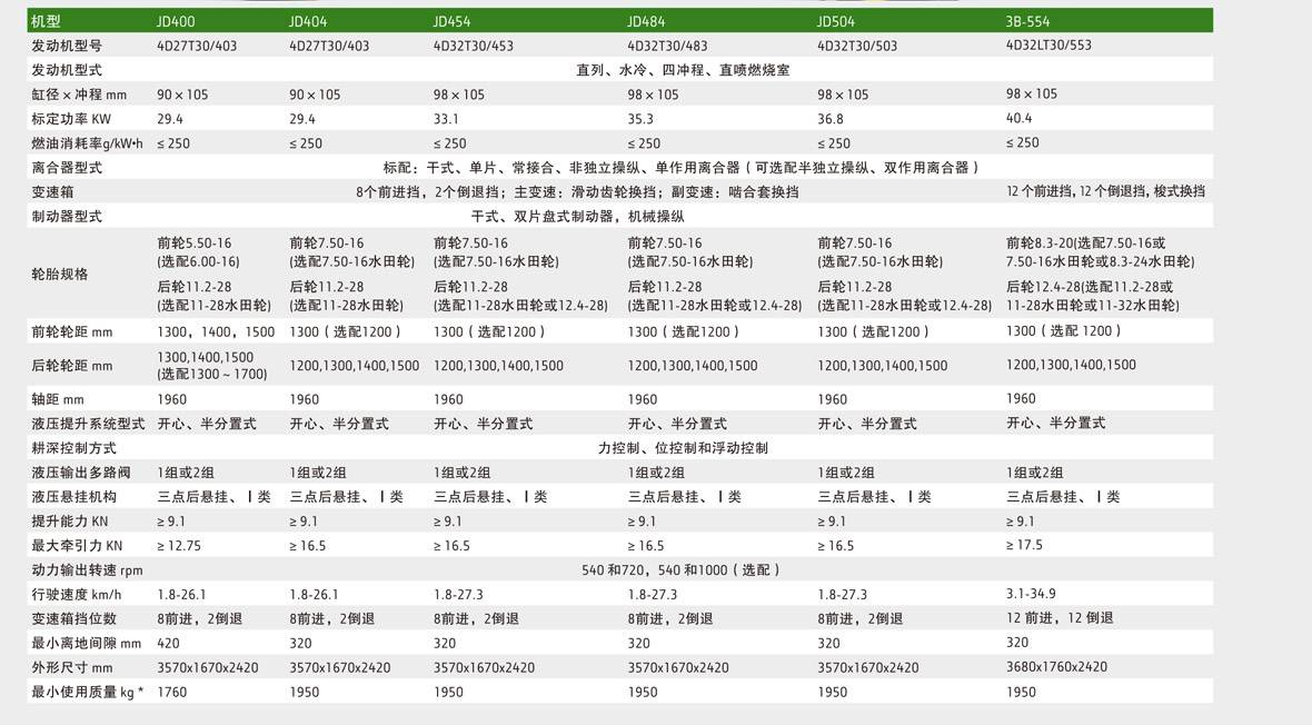 產品介紹.jpg   可靠性高、平均故障間隔時間大大高于國家標準;加強型底盤、牽引力大、動力輸出功率強勁,作業效率更高;動力輸出軸換擋和變速箱副變速都采用嚙合套換擋,換擋輕松、不脫擋;常用輪距為1.3-1.5米,非常適合壟距65-75厘米的壟作物作業,四驅車型可選配1.2米前后輪距,以滿足更窄壟寬作業需求;擋位分布合理,擁有各種農田作業、運輸等所需的理想工作速度,作業效率更高、效果更佳;四驅型自重輕、泥水密封性能良好,水田作業優勢明顯;匹配浙江新柴“國II排放標準”四缸直噴發動機,扭轉儲備大于17%、馬力強勁、易啟動、油耗低;特別適應于全國水田作業,也適應于旱地和草地作業。標配可調擺式拖掛裝置,掛點高度3級可調,且可滿足用戶同時使用動力輸出軸(PTO)和拖掛裝置的需求(如牽引式噴霧機等)。可配套旋耕機、打漿機、犁、耙、播種機、中耕施肥機、滅荏機、拖車、前裝載機、后挖機、開溝機等農機具。