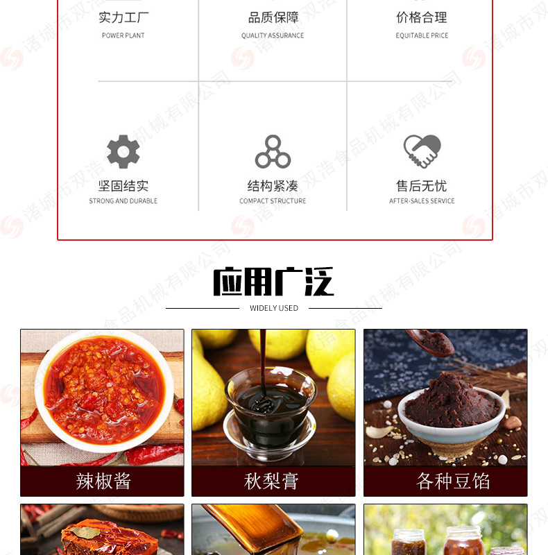 詳細(xì)信息 訂貨號(hào)SHDZ34 加工定制是 貨號(hào)SHDZ34 種類調(diào)味品加工機(jī)械 品牌雙號(hào)食品機(jī)械 型號(hào)SHDZ1500 電壓380(V) 功率4.5(kw) 產(chǎn)品用途加工火鍋底料,各種調(diào)味品 外形尺寸2400*1900*1780(mm) 凈重800(kg) 包裝纏繞膜或木架 營(yíng)銷新品 售后服務(wù)整機(jī)質(zhì)保一年 規(guī)格定金