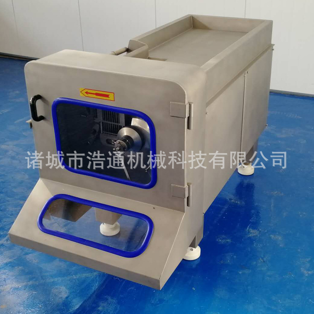 用途:能將0-4攝示度的凍肉一次性切成肉丁。本機(jī)整體采用優(yōu)質(zhì)不銹鋼材料加工制作,安全防護(hù)性能好,切割零件拆卸簡(jiǎn)易,易于清洗,網(wǎng)格刀,切割厚度可通過液壓自行調(diào)整,以滿足不同厚度需要,低預(yù)壓設(shè)計(jì),保證切出肉塊均勻。