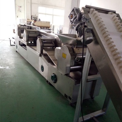 面條機是結合多年的傳統模式和現代工藝,而研發的全自動壓面機,整機結構先進,操作方便,安全耐用,低噪音,工作效率高,外形美觀,節約人工,凡接觸食物的部分,均采用不銹鋼SUS304材質和PU輸送帶構成。符合國家衛生標準。適用于賓館,飯店,食品加工工廠,單位食堂,及個體制作面食之用。 和面: 全采用SUS304材質臥式和面桶、動力強勁、減速電機、高轉速、低運轉、靜態和面,對所加工的面粉反復揉搓,達到顆粒狀、均勻化、不發熱、不粘連、不破壞面筋。和面時間可以自由設定,和面完成后會自動卸料,進入醒發,熟化過程,操作簡單,安全,易懂,和面容量可供你選擇(50—200kg)分為單軸和雙軸攪拌, 壓面: 第一道采用斜紋式滾輪成行面帶,不打滑、不粘連、不斷裂、自動輸送,帶有自動復合與人工復合雙模式。供你選配。復合式充分發揮面筋的力量,大大增加了面條的壓力和性能的強度,達到光滑、通透、韌性、咬勁、耐煮的效果。 在延壓過程中,我們采用變頻調速,光電跟蹤,實現生產線同步運行。 折皮: 一機多用功能附帶皮子機,不但可以做各類面條,還能完成皮子生產,(例如:水餃皮、云吞皮、抄手皮、春卷皮等)產量高,可自由設定張數,超薄皮可達(0.4mm厚)帶有自動雙面撒粉器,噴灑均勻,不漏粉,自動處理粉漬,撒粉的多少可自由調節。 切面: 面條成形是產品的重要組成部分,此機采用計數器,電子解碼器,切面的長短,可以自由設定,自動切斷采用高精密度滾刀式,勁久耐用,帶有輸送平臺,可供多人撿面操作,成形刀具可根不同的面條尺寸形狀定制,互換。 面刀: 采用特殊不銹鋼材質,高精度、加工而成。軸承裝配,不用加油,不生銹,切面無毛刺,經久耐用、通常不人為損壞,正常使用壽命在3—5年。 刀具選配:方形刀、圓形刀、刀削面刀,異形刀(尺寸從0.6—7.2mm)