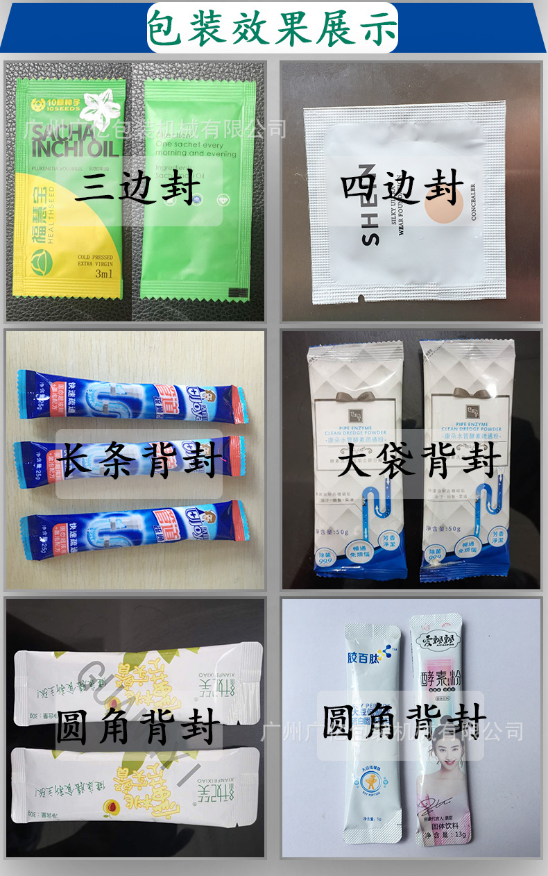 2.該機(jī)采用背封式熱封模式。中文顯示屏控制系統(tǒng)、包不銹鋼箱體、只需在可顯示的設(shè)置單元設(shè)定所需要參數(shù)(充填量袋長等),控制系統(tǒng)則自動(dòng)優(yōu)化匹配各動(dòng)作配合,從而達(dá)到合適的包裝速度。