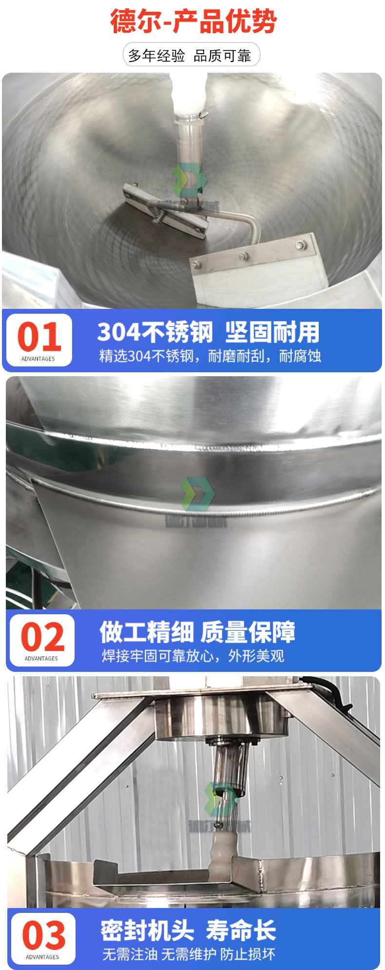 詳細信息 訂貨號DR-BZD300 加工定制是 貨號DR-BZD300 種類預煮機 品牌德爾 型號DR-BZD300 功率1.5(kw) 電壓380(V) 外形尺寸1500*1500*1900(mm) 產品用途物料攪拌炒制 凈重500(kg) 包裝纏繞膜 立式行星攪拌炒鍋 火鍋底料炒料機 半自動炒鍋中央廚房炒菜機 您剛好需要,我們正好專業 合作只是開始,服務永無止境