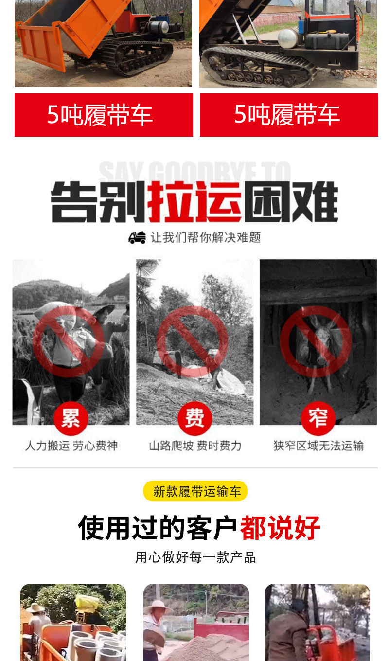履帶運(yùn)輸車大馬力液壓自卸爬坡王山地叢林全地形通用家用履帶車