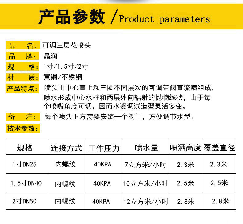可調三層花噴頭 噴泉 水景景觀噴頭 黃銅/不銹鋼