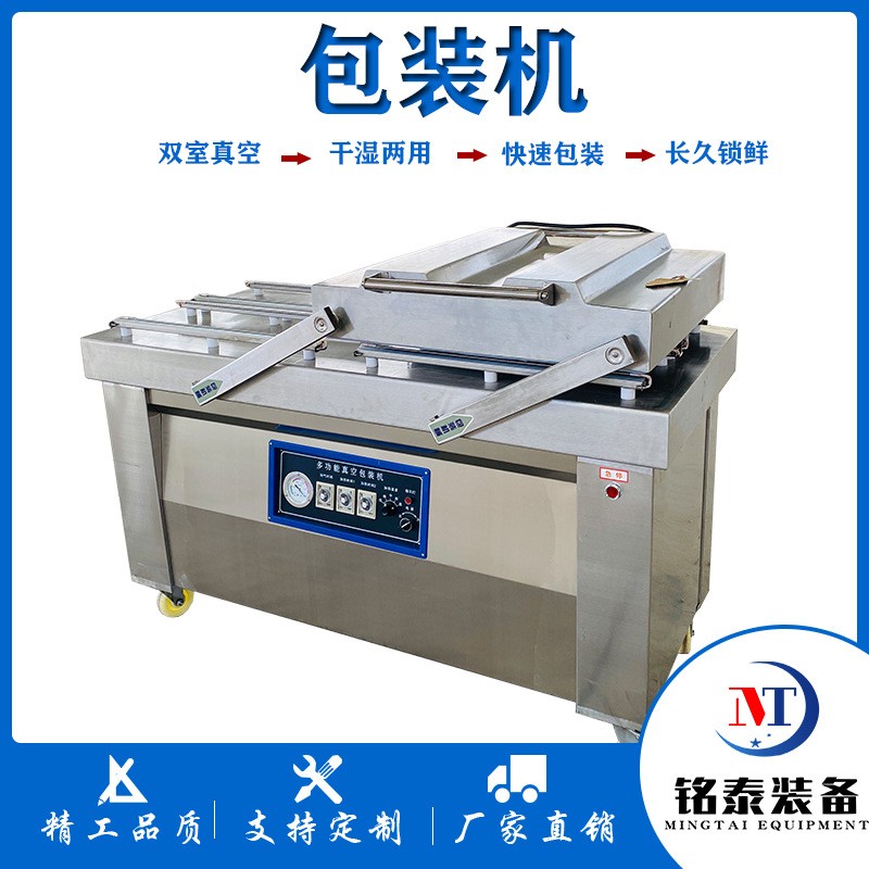 真空包裝機(jī)采用微電腦全自動(dòng)操控設(shè)備,自動(dòng)抽真空、封口,印日期,抽氣時(shí)間、加熱時(shí)間、加熱溫度,冷卻時(shí)間可設(shè)置,整機(jī)采用不銹鋼制作而成,包括底盤(pán)、工作室及工作臺(tái)板均為4mm厚的食品級(jí)不銹鋼制作,經(jīng)久耐用。防止因包裝酸堿鹽等物品而引起腐蝕生銹。上蓋每個(gè)工作室裝兩組熱壓封口裝置,可在任何位置停留,可緩沖保護(hù)。大口徑電磁閥。M型硅膠密封條,還配置了重型移動(dòng)靜音腳輪,承重性好,使客戶移動(dòng)機(jī)器位置時(shí)更加輕松。