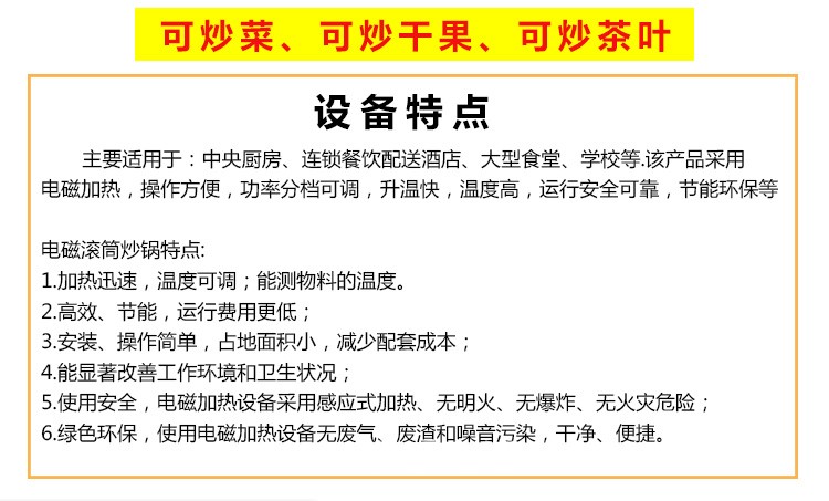 2.省時省電:滾筒<鍋體>直接發(fā)熱不需要任何熱傳遞方式,
