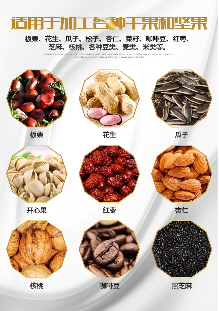 休閑食品業(yè):瓜子、花生、芝麻、腰果、杏仁、板栗、核桃、榛子、香 榧……
