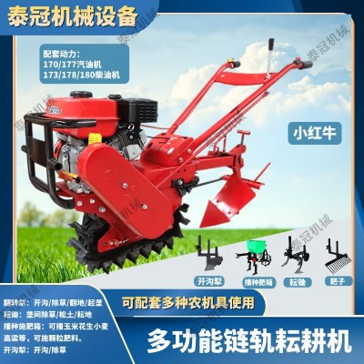 小紅牛開溝除草耘耕播種施肥機(jī)大棚山地丘陵果園多功能鏈軌微耕機(jī)