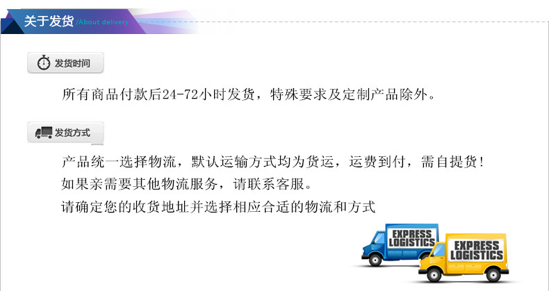 3.產品拍下后24-72小時內發貨,定制或者特殊產品除外!