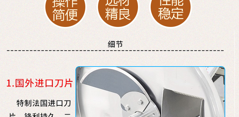 詳細信息 訂貨號QP-120 加工定制否 貨號QP-120 種類切肉片機 品牌赫爾希 型號QP-120 電壓380(V) 功率1.5(kw) 凈重160(kg) 包裝塑包 外形尺寸1350*600*1250(mm) 產品用途食品切片切條 適用范圍冷凍食品廠設備,休閑食品廠設備,肉制品加工廠設備,西餐店設備,中餐店設