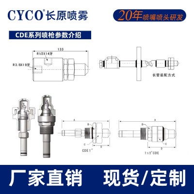 1、CDE系列噴槍上的噴嘴使用大流量的空氣霧化型噴嘴,擁有多級霧化效果,在火力發電廠除塵脫硫脫硝,化工廠、水泥廠和除塵環保工程都有廣泛應用;