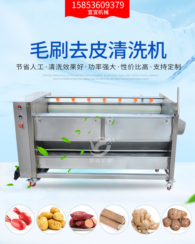 廠家銷售紅薯土豆清洗去皮機 蓮藕胡蘿卜大姜毛刷棍清洗機