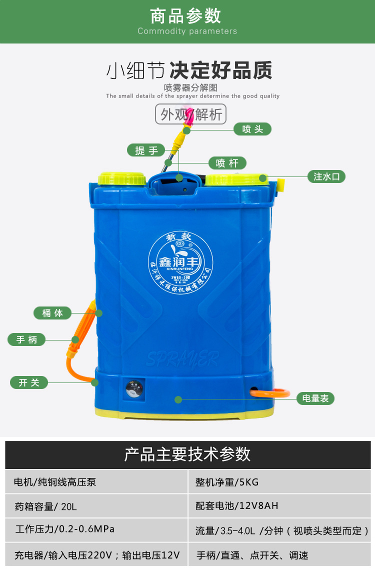 可調鋰電瓶打農藥噴霧器背負式電動噴霧器18L/20L高射程霧化農用