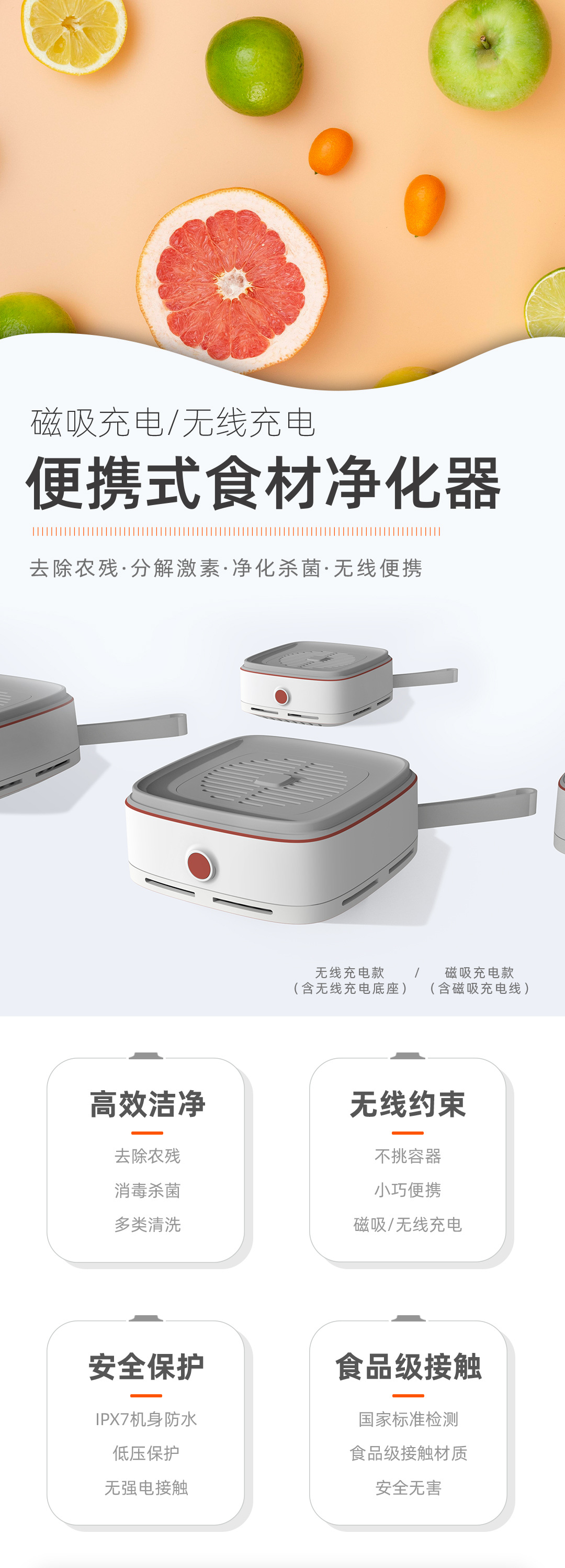 無線果蔬清洗機(jī)凈化器消毒機(jī)家用洗菜水果肉食材殺菌去除農(nóng)藥殘留