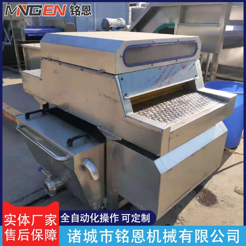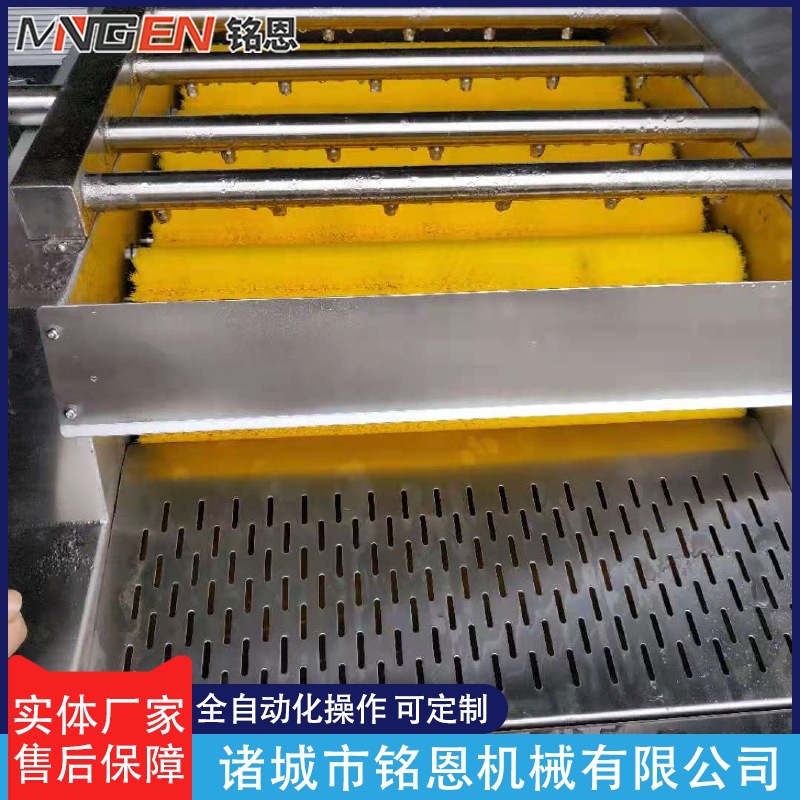 毛輥粽葉清洗機是結合毛輥清洗機和噴淋清洗機的特點和功能研發制作加工的,適應于條狀葉類產品如粽葉等的清洗,設備采用毛刷摩擦原理,在毛刷高速旋轉的同時,頂部的高壓水噴淋頭不斷的沖洗物料,在毛輥轉動推送下,清洗出來的物料干凈無污,漂亮有光澤。