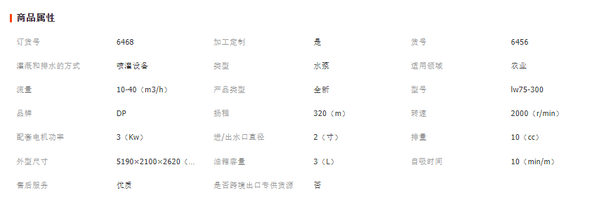 lw75-300卷盤(pán)式噴灌機(jī)性能參數(shù)表: