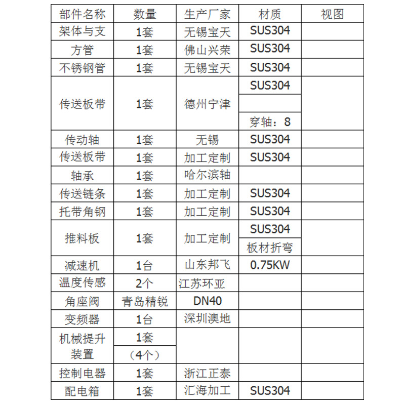 材料配置(附表)