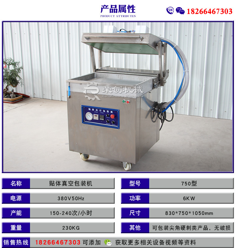榮創(chuàng)貼體真空包裝機(jī)是在真空狀態(tài)下,利用真空貼體膜將產(chǎn)品真空密封在透明真空膜和底盤之間。可保持食品、海鮮、肉類等的色澤、香味、鮮嫩度,真空貼體包裝機(jī)特具貼身包裝立體展示和真空保鮮保護(hù)之雙重功效。真空全密封式包裝,可以保持產(chǎn)品自然的鮮嫩、芳香、色澤和汁味。用高阻隔真空包裝膜,可阻隔氧氣,在低溫環(huán)境下抑·制好氧菌的繁殖,更長時(shí)間保鮮及保護(hù)產(chǎn)品的自然色澤。