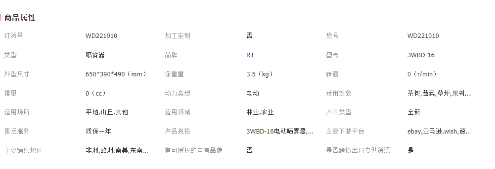 多個配置可供選擇,下單前請聯系客服 山東銳拓機械生產的電動噴霧器攜帶方便,噴射距離遠,超高轉速,能用于農業農藥噴灑,養殖消毒,果樹施藥,蔬菜大棚等多個場所防疫殺蟲殺菌等作用經濟、實用。海內外熱銷,用戶滿意。海外CNMC品牌服務商,廠家直供一件代發,支持零售和批發。 所有產品均有完善售后,請放心采購 詳情請撥打賣家聯系電話:18653784900 |