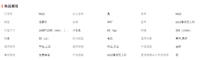 植保無人機產品參數: