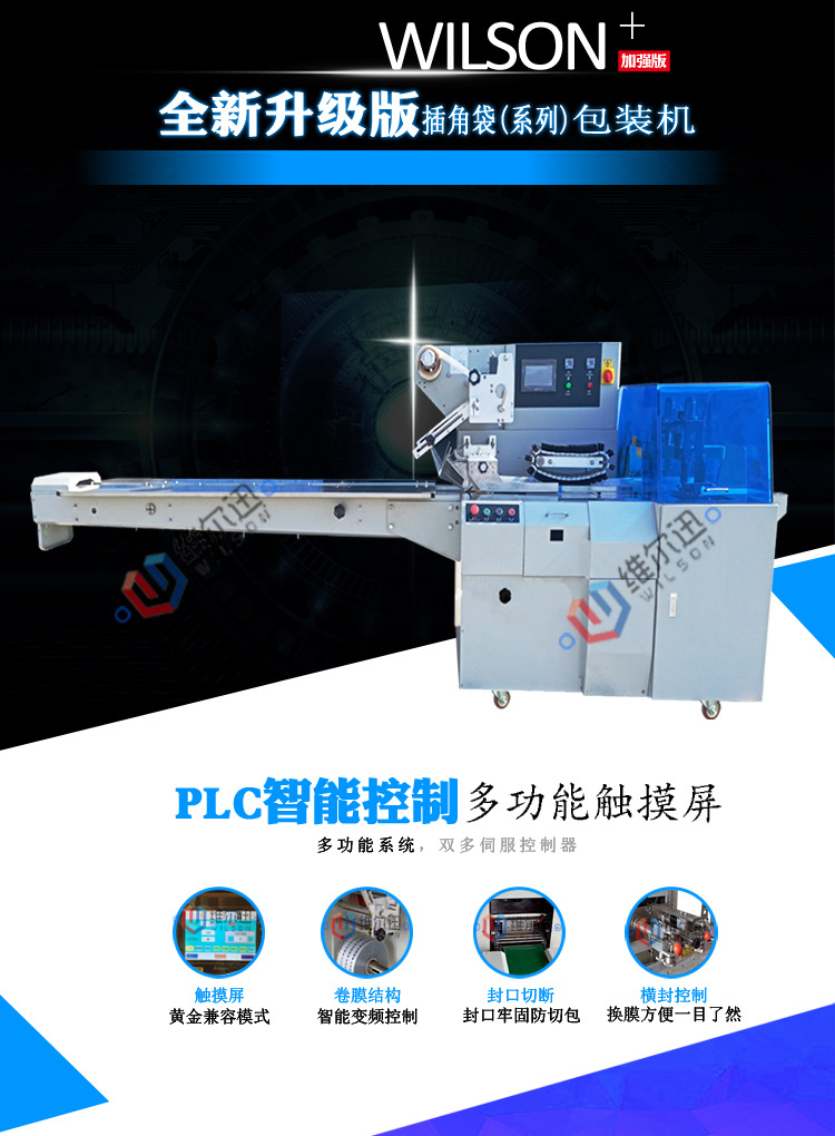 9、該機包裝機能制多種袋型,如:平面袋(背封、三角封、四邊封)、手提袋、沖孔袋;