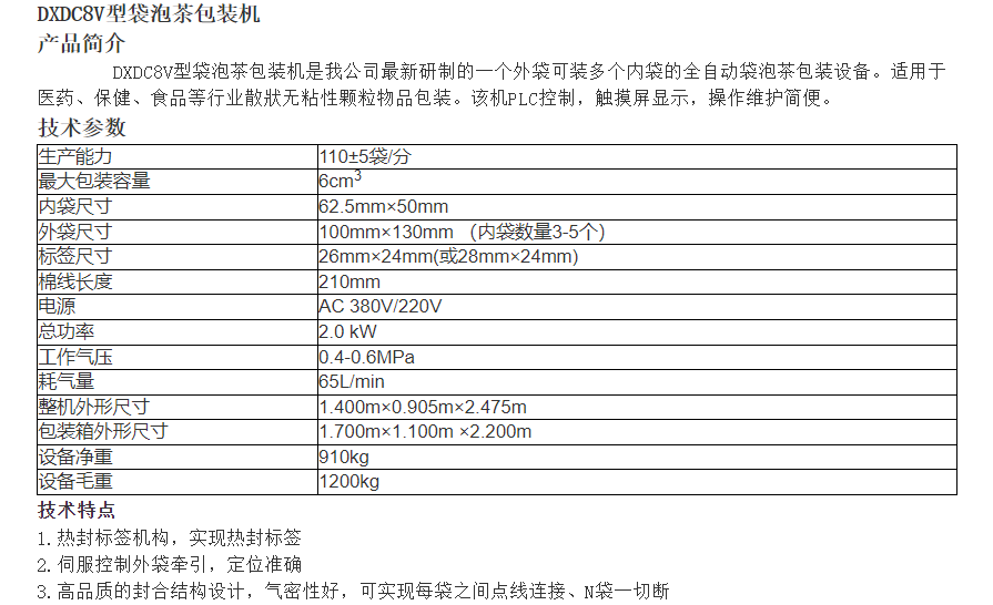 內(nèi)外袋一次成型 115袋/分鐘南峰(NF)牌DXDC8V型袋泡茶包裝機