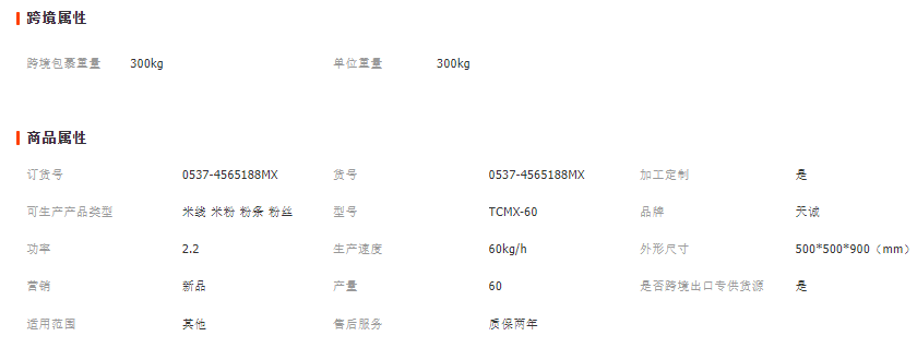 四、常用模片規格,粉絲一般有0.8mm、1.0mm、1.2mm三種規格,粉條一般有1.3mm、1.5mm、1.6mm、1.8mm、2.0mm等多種規格,扁粉一般有1.0×3mm和1.0×5mm、1.0×10mm、1.0×15mm四種,隨機配帶兩種模具,規格客戶自選,特殊規格需定制。