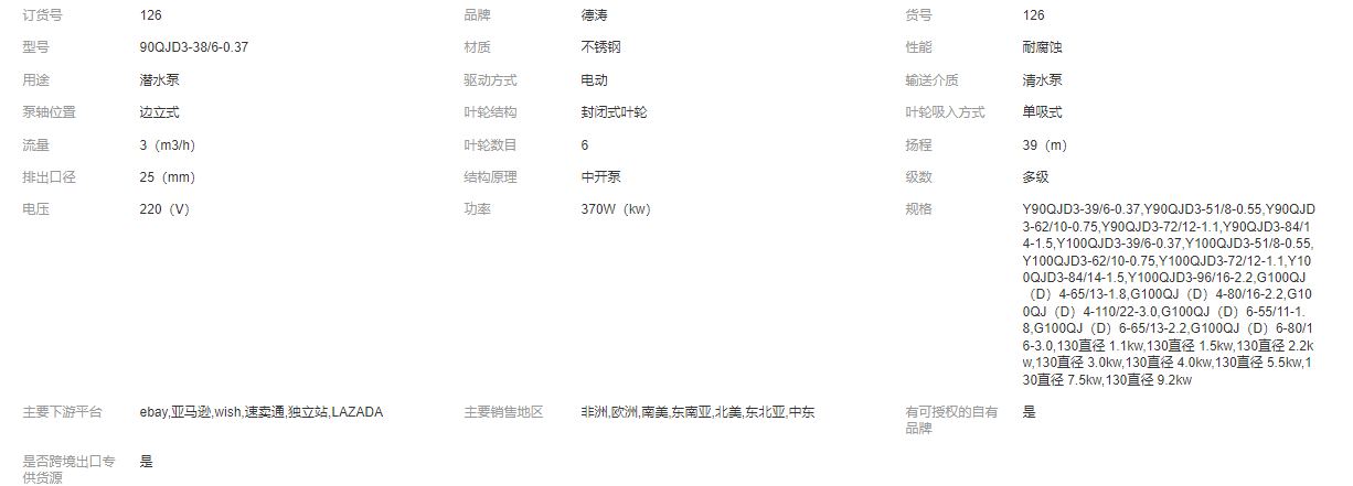 德濤 QJD井用潛水泵 不銹鋼多級深井泵家用220V高揚程抽水泵