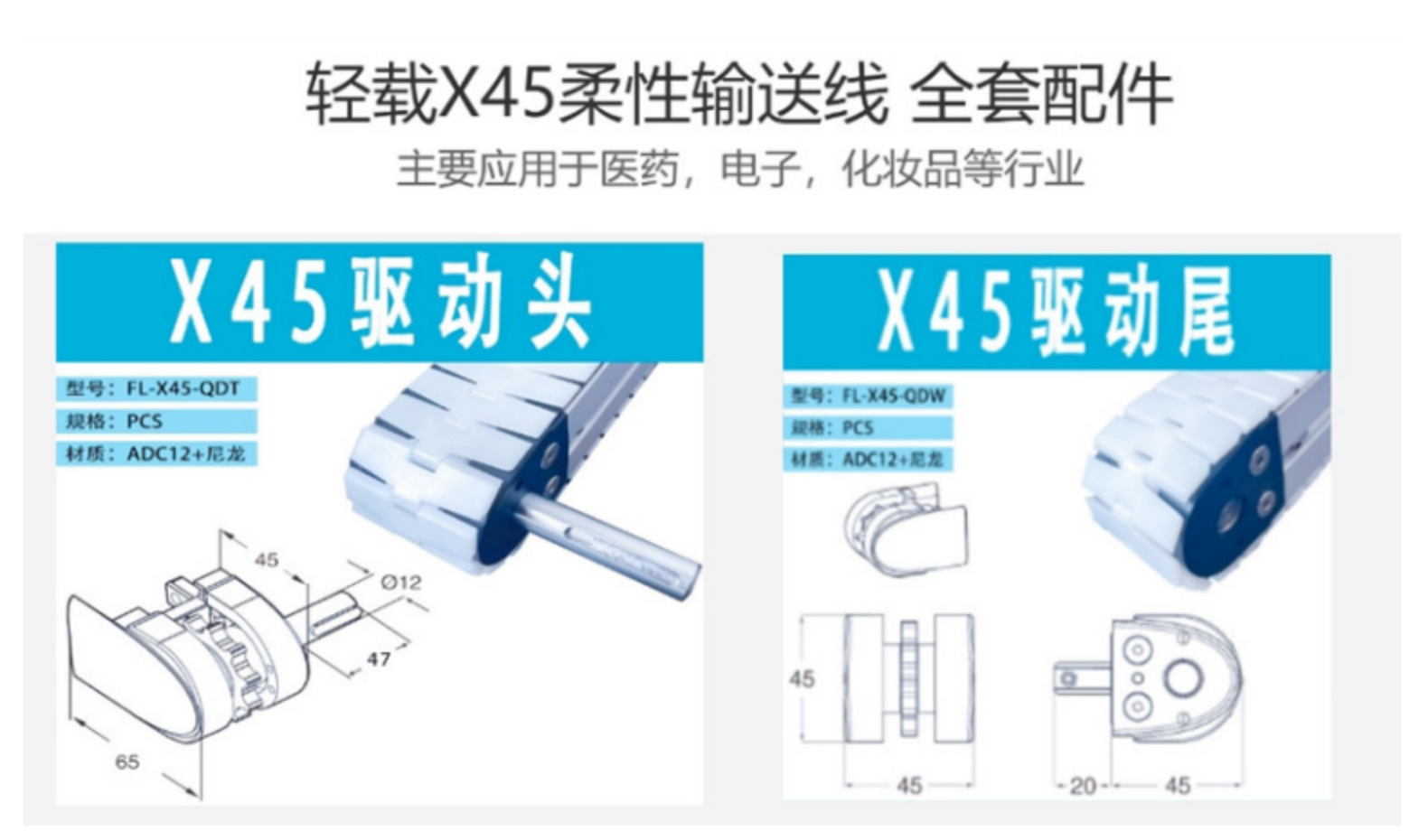 X45 H44輕載柔性輸送線機頭機尾型材鏈板輸送機配件