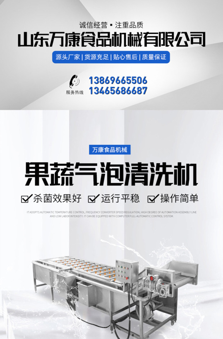 詳細信息 訂貨號WK-350 加工定制是 貨號350 種類洗果機 品牌萬康 型號WK-350 功率2KW(kw) 電壓380(V) 外形尺寸3500*1200*1500(mm) 產品用途清洗去殘留 包裝纏繞膜 適用范圍果蔬加工廠設備 營銷新品 規格定金,WK-350,WK-400,WK-500,WK-600,WK-700,WK-800 是否跨境出口專供貨源否
