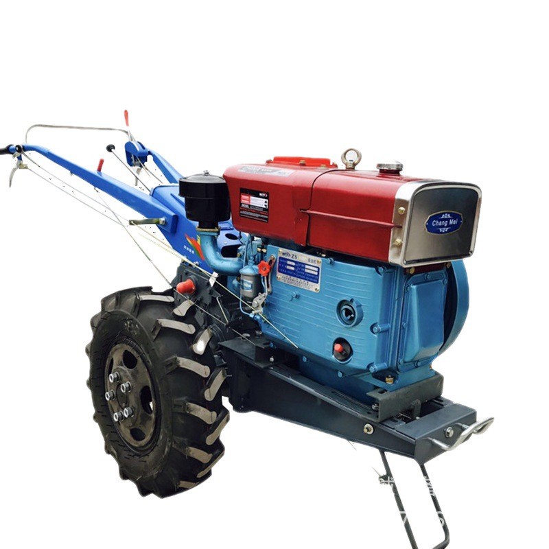 手扶拖拉機是一種小型拖拉機。由發動機,底盤、電氣等系統組成的主要用于牽引和運輸的多用途行走機械。手扶拖拉機能行駛是靠內燃機的動力經傳動系統,獲得驅動扭矩的驅動輪再通過輪胎花紋和輪胎表面給地面小、向后的水平作用力(切線力),這個反作就是推動拖拉機向前行駛的驅動力