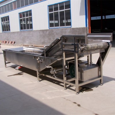 1、設備除電機、軸承等標準件外均采用不銹鋼SUS304材料制作,符合出口食品衛生要求。設備中設有氣泡發生裝置,使物料呈翻滾狀態,去除產品表面農殘的功效,同時可加入適量的藥劑,進行消毒固色。漂浮物可以從溢流槽溢出,沉淀物從排污口排出,以達到清洗的目的。該設備在氣泡、沖浪、提升、噴淋等聯合工作下,具有洗潔凈高、節能、節水、設備穩定可靠能保持原有色澤等特點。是蔬菜、食品加工、餐飲等行業的設備。